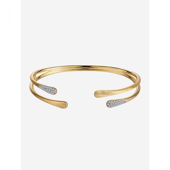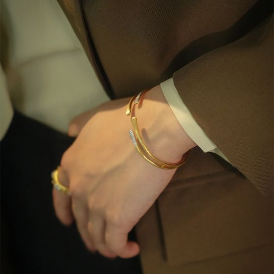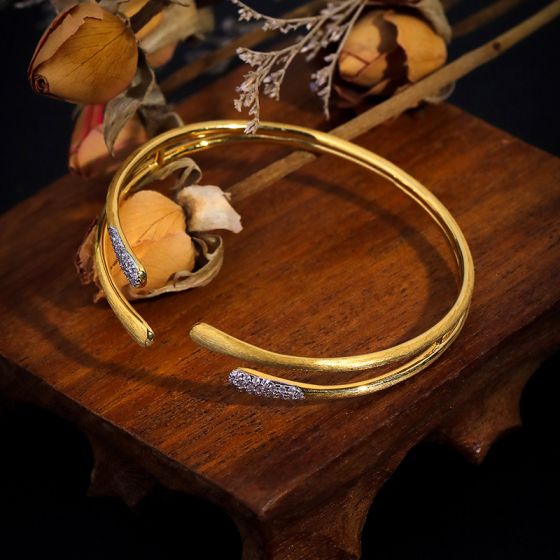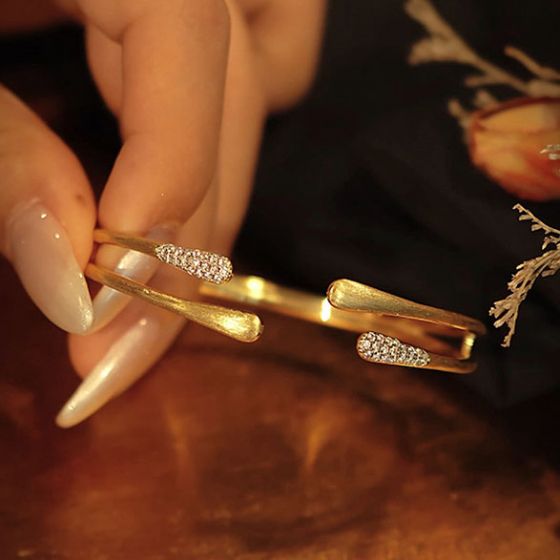 Fashion Double Layers Waterdrop CZ 925 Sterling Silver Open Drawing Bangle