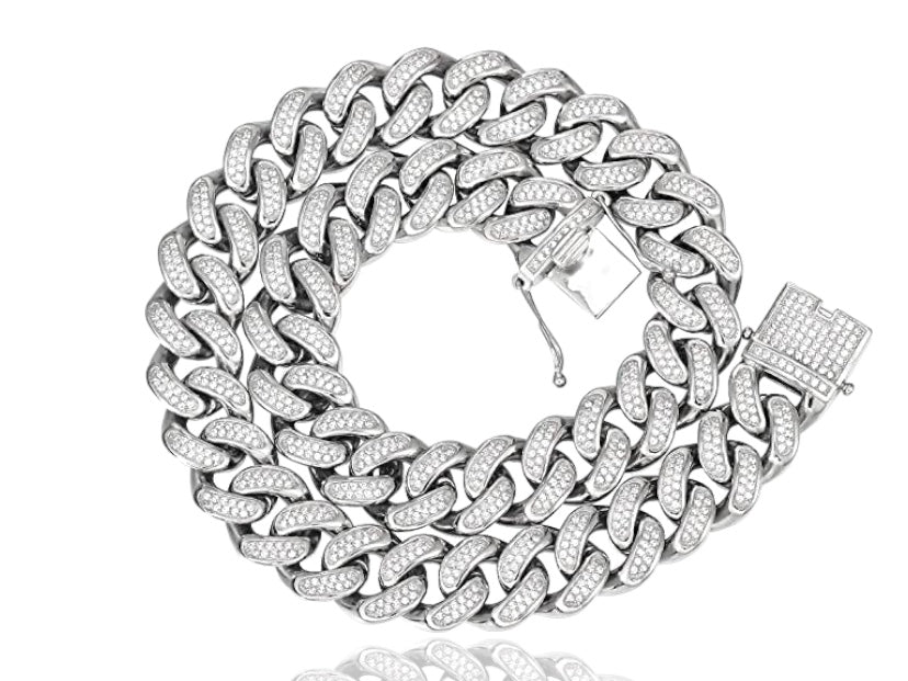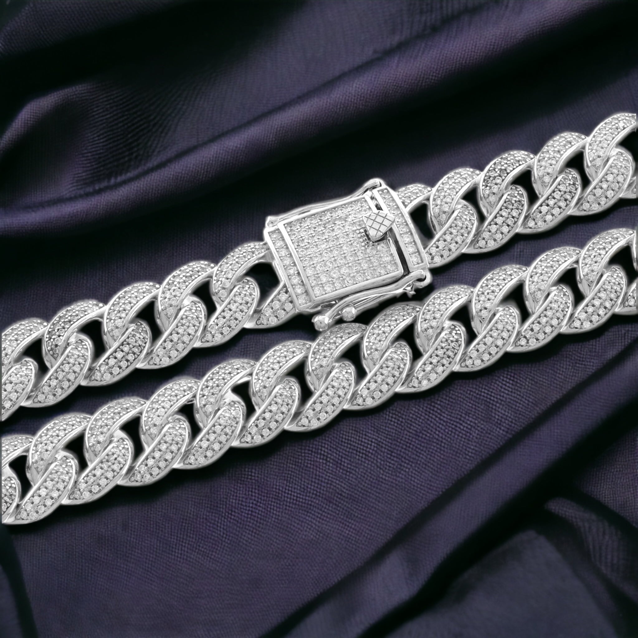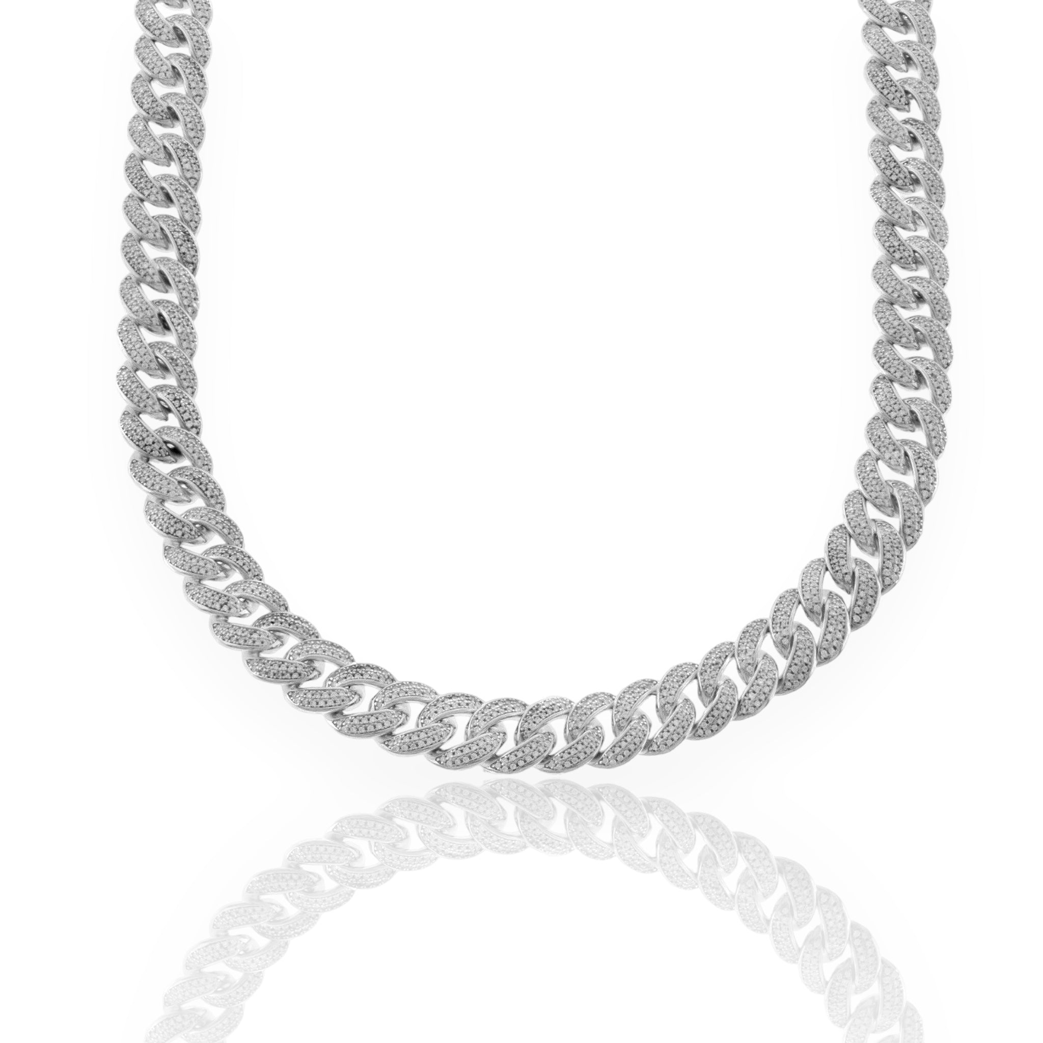 Sterling Silver 925 Rhodium Plated CZ Encrusted Curb Chains 11.7mm
